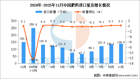 2025年11月中國肥料進(jìn)口數(shù)據(jù)統(tǒng)計(jì)分析:進(jìn)口量138.9萬噸
